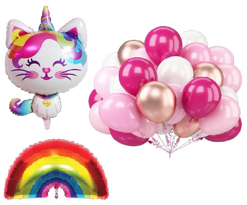 HomeBabyParty SuppliesPop The Party 59 Pcs Cat Unicorn Party Supplies Balloon Decorations with Rainbow foil Balloon | Birthday Decor for Girls Cat Unicorn Theme | Fancy Rainbow Kitty Balloons for Bday or Baby Shower.