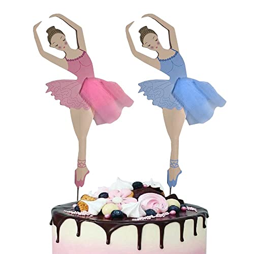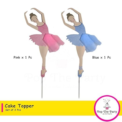 Pop the Party Dancing Ballerina Cake Topper Pack Of 2 For Birthday Decoration Cake Toppers (Pink & Blue Ballerina Twins)