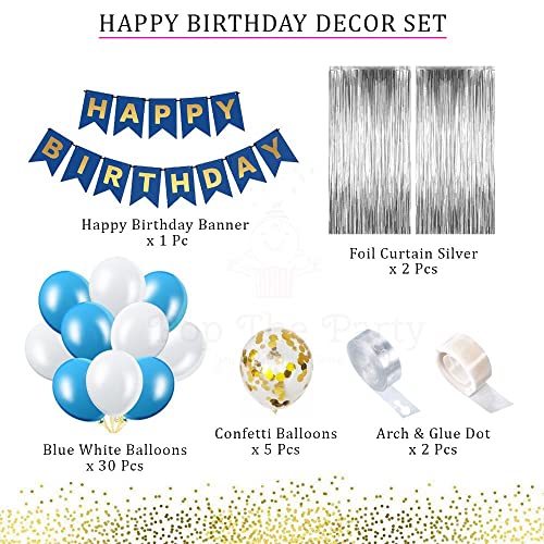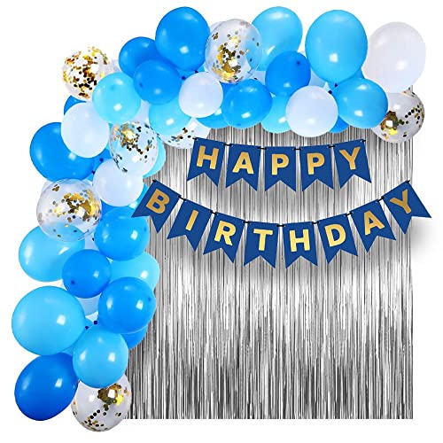 HomeBabyParty SuppliesDark Blue Birthday Banner Party Decorations Kit Gold Confettiwhite And Blue Balloons ArchGlue Dot And silver Curtains for Boys Girls Men Women Birthday Party Decoration (DarkBlue)