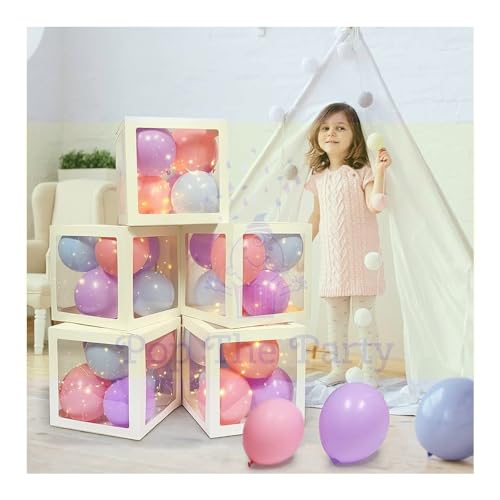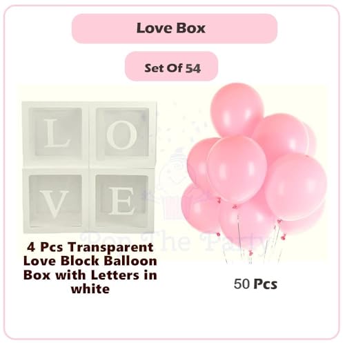 Package Includes: 4 Pcs Transparent 12Inch X 12Inch X 12 Inch Boxes With Letter L O V E With 50 Pcs Pink Balloons.