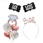 Pop The Party Engaement Patry Decoration Kit with Mr. Mrs Banner,Ring, Heart, Round foil Balloon,Bride Heir Band for Bridal Shower, Wedding Reception, First Night Pack of 7