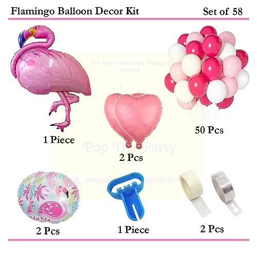 Pop The Party Flamingo Theme Foil Balloon For Birthday Decoration Items & Kit - Pack Of 58, Multicolor