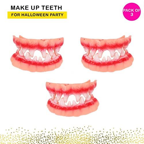 Gnarly Teeth Gag Teeth Ugly Fake Teeth Bob Teeth Prank Toy Troubled Teeth Vampire Fangs Teeth for Halloween Decoration Theme Costume Party Favors (Pack of 3)