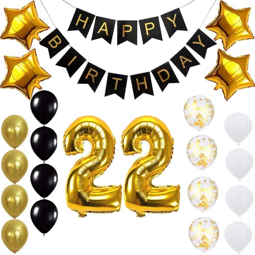 Pop The Party Gold 22nd Birthday Decoration Kit With Banner ,Star Latex and confetti Balloon Set of 22