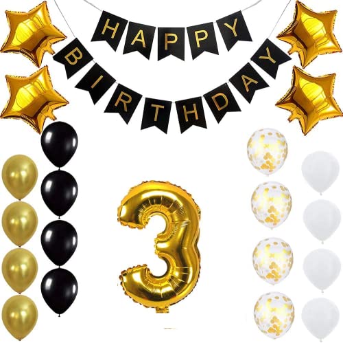 Pop The Party Gold 3rd Birthday Decoration Kit With Banner ,Star Latex and confetti Balloon Set of 22