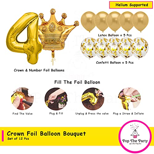 HomeBabyParty SuppliesPop The Party Gold 4 Digit Number foil Balloon with Crown Foil, Confetti and Latex Balloon for Birthday Anniversary Balloon Set of 12