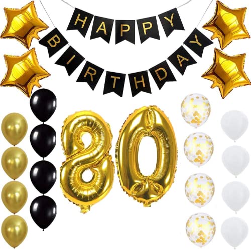 Pop The Party Gold 80th Birthday Decoration Kit With Banner ,Star Latex and confetti Balloon set of 23