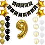 Pop The Party Gold 9th Birthday Decoration Kit With Banner ,Star Latex and confetti Balloon set of 22