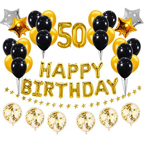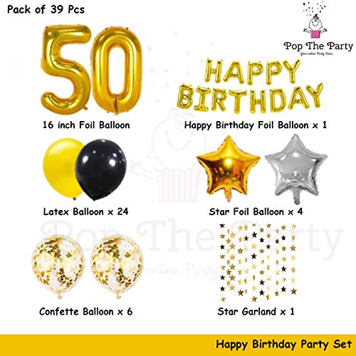 HomeBabyParty SuppliesPop The Party Golden and Black 50th Birthday Party Decorations Set- Gold Happy Birthday Banner,Foil Number Balloons, Latex Balloons and More for 50 Years Old Birthday Party Supplies