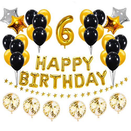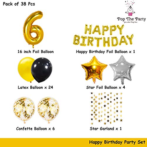 HomeBabyParty SuppliesPop The Party Golden and Black 6th Birthday Party Decorations Set- Gold Happy Birthday Banner,Foil Number Balloons, Latex Balloons and More for 6 Years Old Birthday Party Supplies