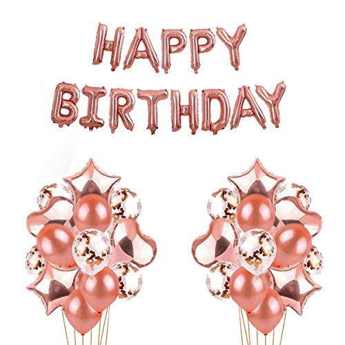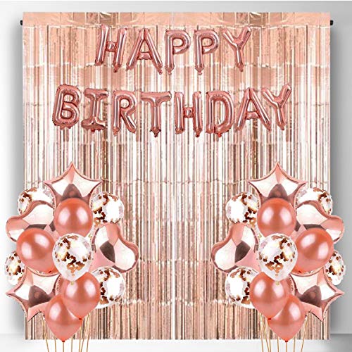 Pop The Party Happy Birthday Balloons Banner Set with Curtain Pack of 43 for Including Latex, Star, Heart and Confetti Balloons