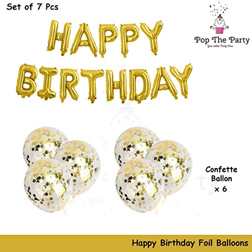 HomeBabyParty SuppliesPop The Party Happy Birthday Balloons with Golden Confetti,Banner Aluminum Foil Letters Balloons for Party Supplies and Birthday Decorations (Gold)