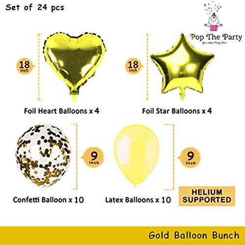 Happy Birthday Banner Bunting Flag with Gold Heart Star Confetti and Latex Balloon for Birthday Decoration(Set of 41)
