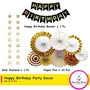 Happy Birthday Banner Party Hanging Paper Fans and Star Bunting Decoration for Birthday Wedding Party(White Gold)