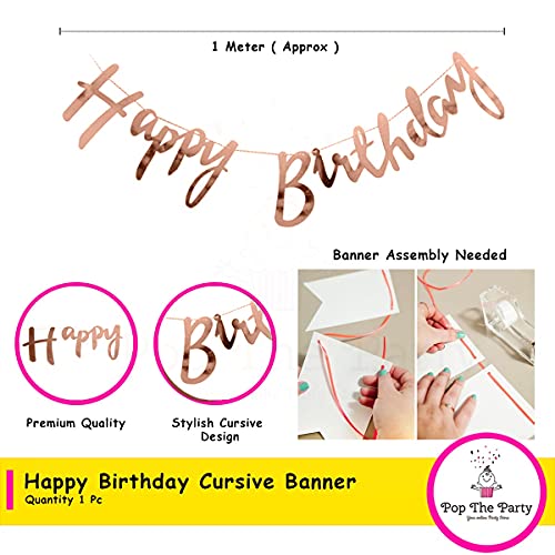 Pop The Party Happy Birthday Cursive Banner for Decoration Rose Gold