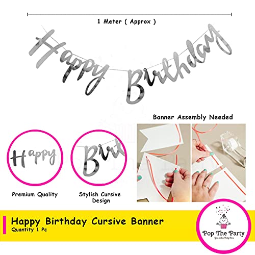 Pop The Party Happy Birthday Cursive Banner for Decoration Silver