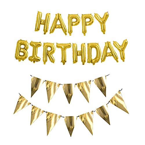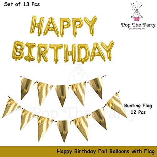 Pop The Party Happy Birthday Letter Foil Balloon with Zig Zag Triangle Bunting for Party Decoration