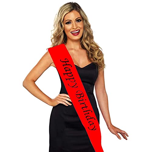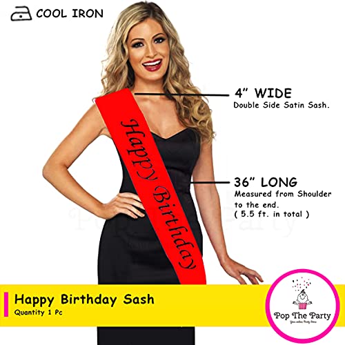 Pop the Party Happy Birthday Sash for Birthday Girl/Boy & Party Decoration Accessories (Happy Birthday Red)