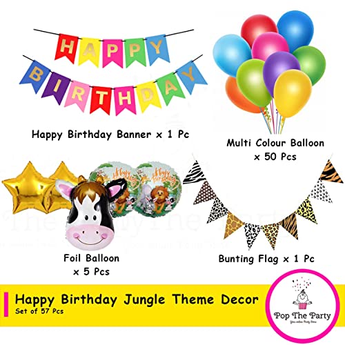 Package Includes: This Beautiful Jungle Theme Party Decorations Set Include: 1X Happy Birthday Banner1 X Triangle Bunting50Pcs Multi Balloon1 Cow Foil Balloon2 Round Balloon2 Star Foil Balloon