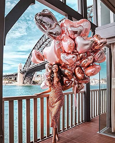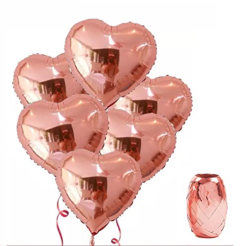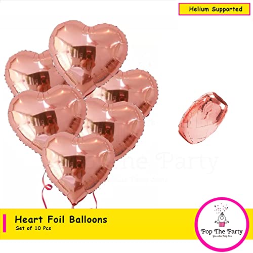 Pop The Party Heart Shape Foil Balloons for Party Decorations 10 Pieces (Rose Gold)