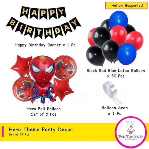 HomeBabyParty SuppliesHero Theme Balloons Garland Kit - 37 Pcs Including Hero with Star Round Foil Happy Birthday Banner Arch and Latex Balloon Party Decoration (Multicolour)