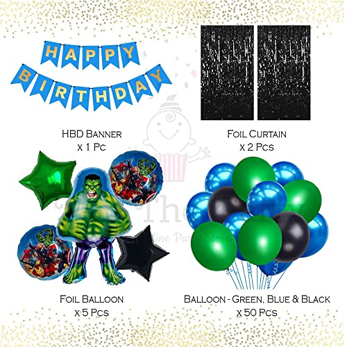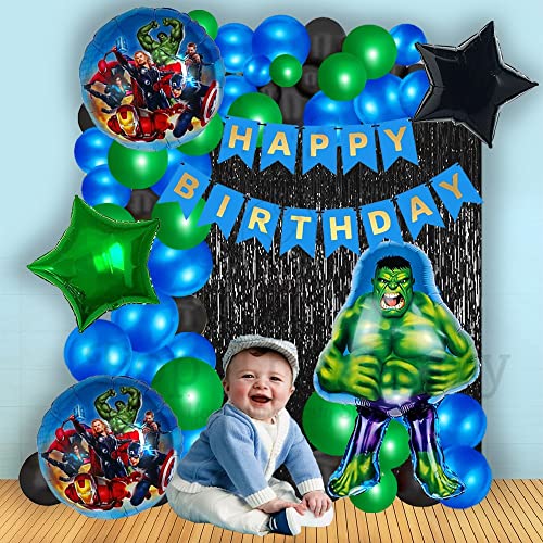 HomeBabyParty SuppliesHero Themed Party Balloon Kit 58 PCS Green Black Blue Latex Balloons with Happy Birthday Banner with Black Curtain and Hero Foil Balloons for Birthday Party Decorations (multi)