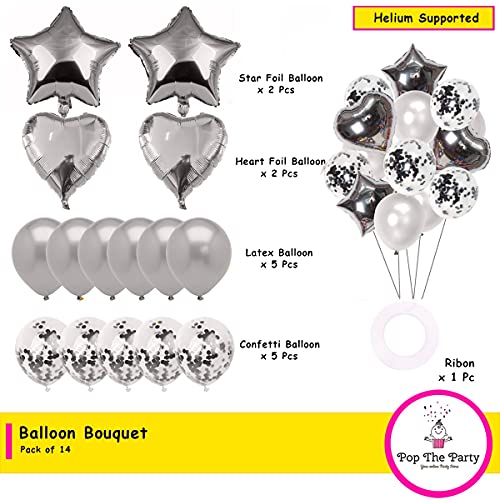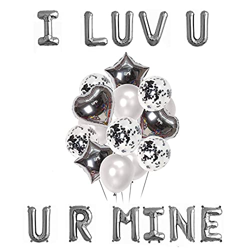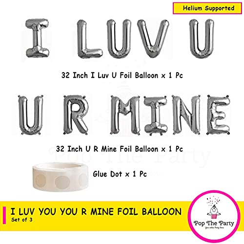 Pop the Party I luv You alfabet and U R Mine Decoration Set with 14 pcs Silver Bunch