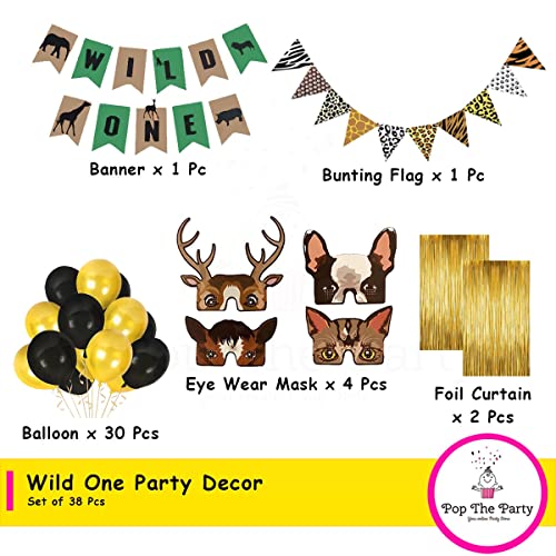 This Package Includes : 1 Wild One Banner Triangle Bunting 30 Pcs Balloon4 Pcs Mask 2 Pcs Curtain
