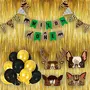 Jungle Theme Decoration Set with Banner Triangle Bunting Curtain Eye Mask and Latex Balloon for Kinds Birthday Party Decoration