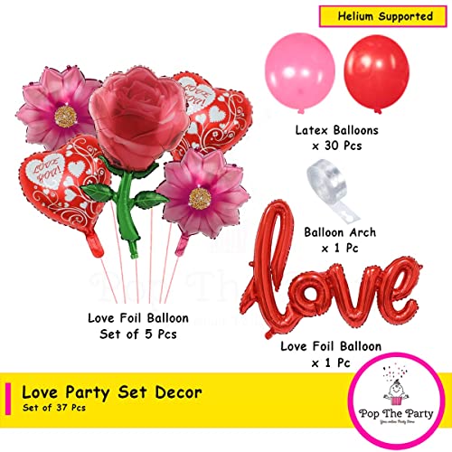 Love Rose Theme Decoration with LoveFlowerHeartRose Foil and Latex Balloon for Use of Birthday Anniversary Valentines Decor