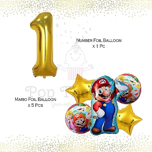 HomeBabyParty SuppliesMario Birthday Party Supplies 6 PCS Mario Brothers Mylar Balloons for Boys Girls 1st Birthday Baby Shower Mario Themed Party Decorations (1st Birthday)