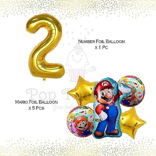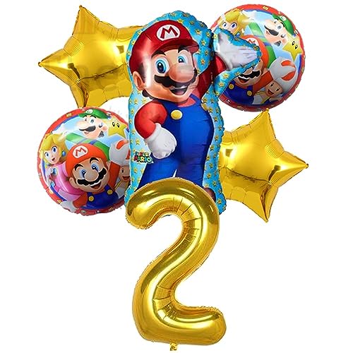HomeBabyParty SuppliesMario Birthday Party Supplies 6 PCS Mario Brothers Mylar Balloons for Boys Girls 2nd Birthday Baby Shower Mario Themed Party Decorations (2nd Birthday)