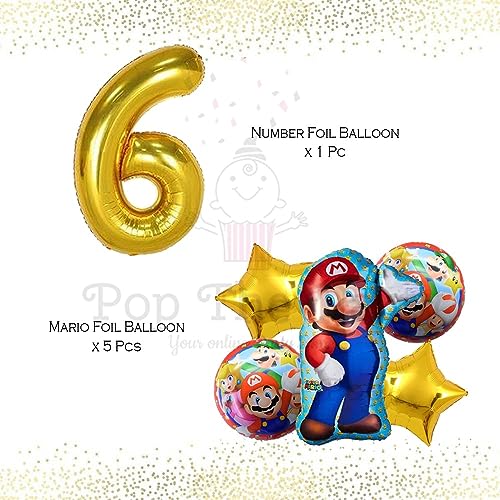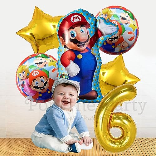 HomeBabyParty SuppliesMario Birthday Party Supplies 6 PCS Mario Brothers Mylar Balloons for Boys Girls 6th Birthday Baby Shower Mario Themed Party Decorations (6tht Birthday)