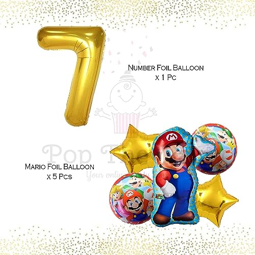 HomeBabyParty SuppliesMario Birthday Party Supplies 6 PCS Mario Brothers Mylar Balloons for Boys Girls 7th Birthday Baby Shower Mario Themed Party Decorations (7th Birthday)