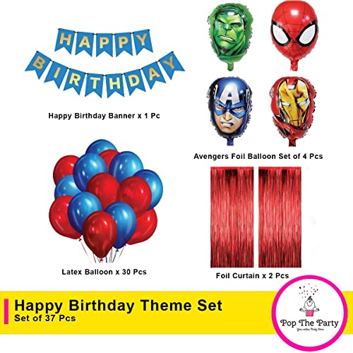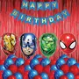 Mix Hero Theme Decoration with Happy Birthday Banner Curtain and Latex Baloon (Pack of 37)