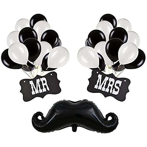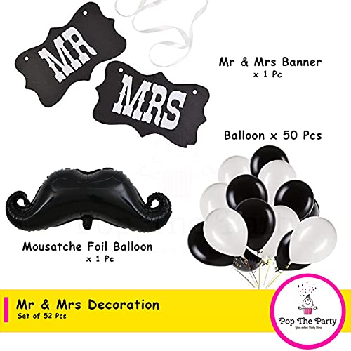 This Is The Latest And Premium Product By Team Developed After R&D From Our Exclusive Customers. The Pack Includes 2Pc. Mr. And Mrs. Signboard With 1 Pc. Mustache Foil Balloon And 50 Pcs Black And White Latex Balloons For Legend Party Decoration Set For V