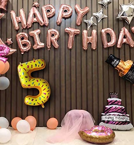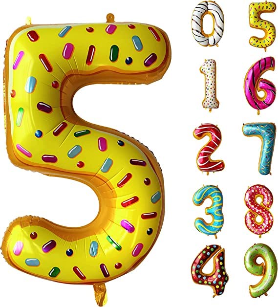 HomeBabyParty SuppliesPop The Party Number 5 Balloon, 5Th Birthday Party Foil Mylar Number Five Balloons For Kid Girl Boy, Donut, 32 Inch (5No Candy),Yellow,1 Piece