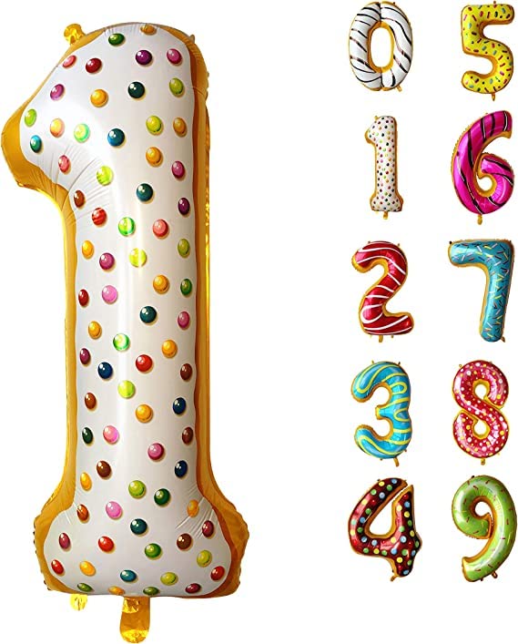HomeBabyParty SuppliesPop The Party Number 1 Balloon,1St Birthday Party Foil Mylar Number First Balloons For Kid Girl Boy, Donut, 32 Inch (1 Number Multi) (1), 1 Piece