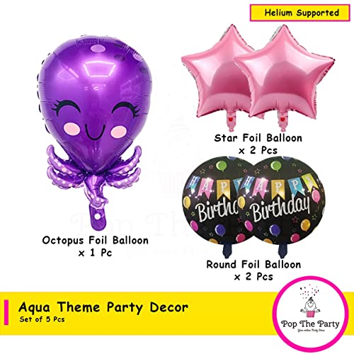Pop The Party Octopus Theme Decoration with Star and Round Foil Balloon for Birthday Décor