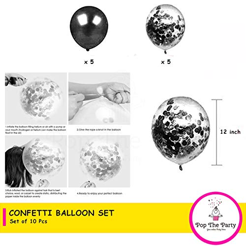 HomeBabyParty SuppliesPop The Party Pack of 11 Pcs Black Congratulation Banner with Black Confetti Balloons for Birthday Decoration Items & Latex Balloon