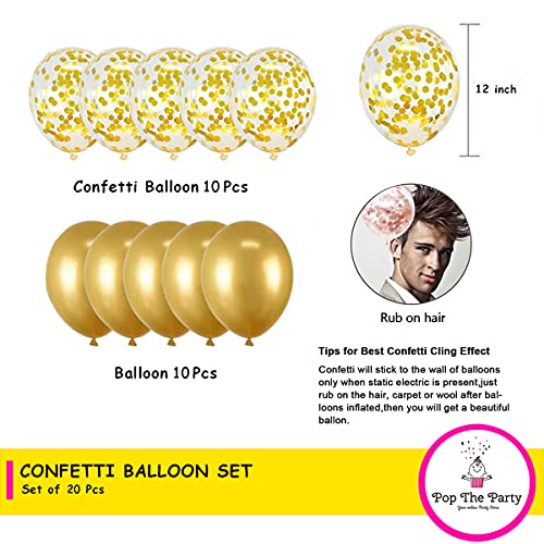 Pop The Party Pack of 20 Pcs Black Confetti Balloons for Birthday Decoration Items & Latex Balloon (Confetti Yellow)