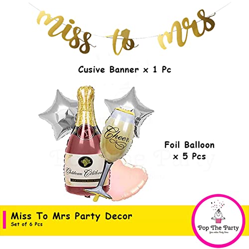 Pop The Party Bachelorette Party Decoration Set with Ms to Mrs Bunting and Bottle,Glass,Star Heart Balloon kit