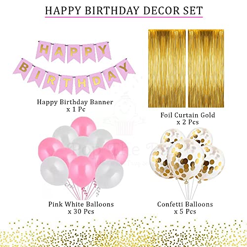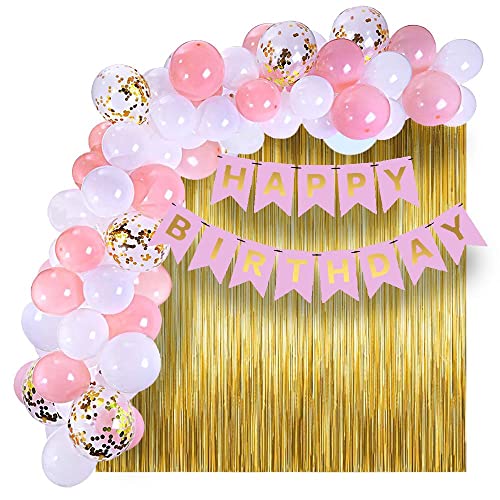 HomeBabyParty SuppliesPop The Party Pink Birthday Banner Party Decorations Kit Gold Confetti,White and Pink Balloons, Arch,Glue Dot and Gold Curtains for Boys Girls Men Women Birthday Party Decoration (pink)