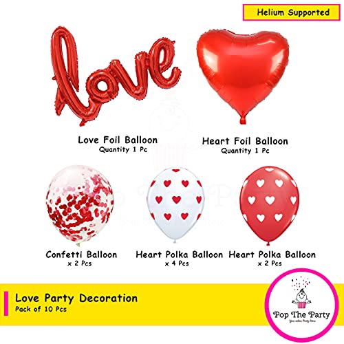 HomeBabyParty SuppliesPop the Party Red Heart Foil Balloon For Decorations- 10 Pcs | Valentine Day Decorations Items | Love Foil Balloon For Decoration | Red Heart Shaped Balloons