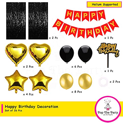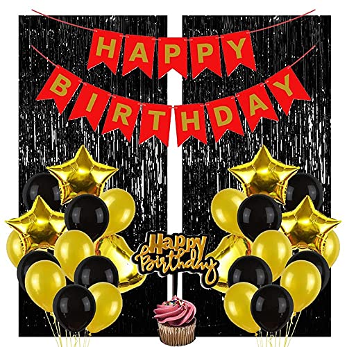 HomeBabyParty SuppliesRed Gold Black Happy Birthday Banner Balloon Set with Curtain Pack of 24 for Including Latex StarHeartRed Happy Black Curtain Birthday Banner and Cake Topper