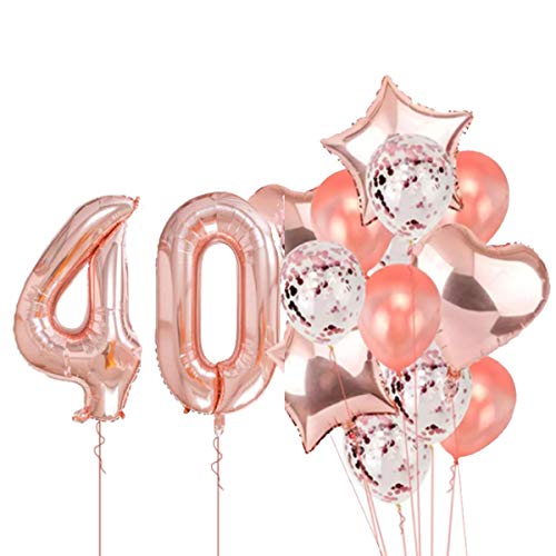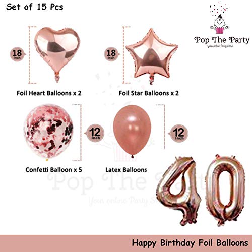 HomeBabyParty SuppliesPop The Party Rose Gold 40 Balloon for 40th Birthday -Large Pack of 16 | Rose Gold Confetti Star and Heart Foil Balloon Bouquet for Party Decoration | Great for 40th Birthday Party Decoration Suplies