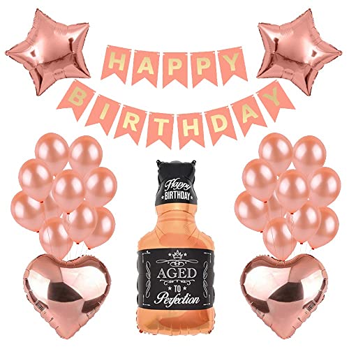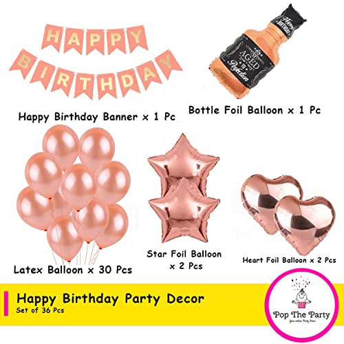 Pop The Party Rose Gold Birthday Decoration Kit with Banner,Star, Heart,Latex and Aged to Perfection Bottle setfor 30th,40th,50th Birthday Party Décor