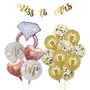 Pop the Party Rose Gold Bridal Shower Decorations, Bachelorette Party Décor ,Miss to Mrs. Gold Banner , Rose Gold Ring , Heart foil , Round Foil and Gold Latex Confetti balloon