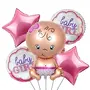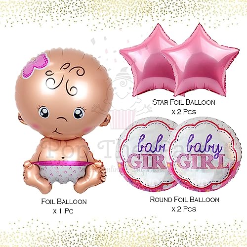 Pop The Party Set of 5 Pcs Baby Girl Foil Balloons For Baby Shower/It's a girl Baby Welcome Theme Decorations Item.