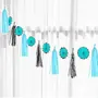 Tassels Cum Fan Hang Flag for Birthday Parties Weddings Baby ShowersAnniversaries and Other Occassions(Blue Silver)